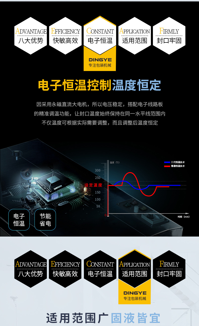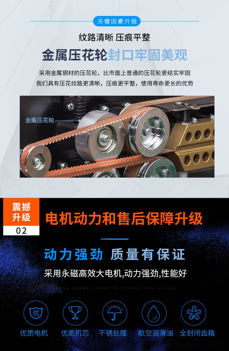 - 針對鋁箔材料或者鋁箔復(fù)合包裝材料設(shè)計。鋁箔具有良好的阻隔性,能有效防止氧氣、水分等進(jìn)入包裝內(nèi)部。這種封口機(jī)可以確保鋁箔包裝的密封性,常用于食品、藥品、保健品等行業(yè),如藥品的鋁箔泡罩包裝的封口。