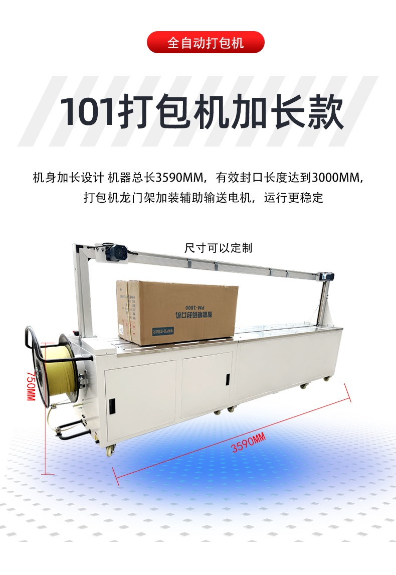 自動打包機的運作基于一套連貫且智能的程序。當物品被放置在傳送帶上并輸送至打包位置時,設備的傳感器迅速捕捉到物品的存在與位置信息。打包帶隨即從帶盤自動送出,通過送帶機構精準地環繞物品一周。此時,加熱裝置啟動,將打包帶的接頭部位加熱至熔融狀態,緊接著壓緊機構迅速動作,使接頭處牢固粘合,完成一次打包操作。整個過程一氣呵成,無需人工過多干預,極大提升打包效率。