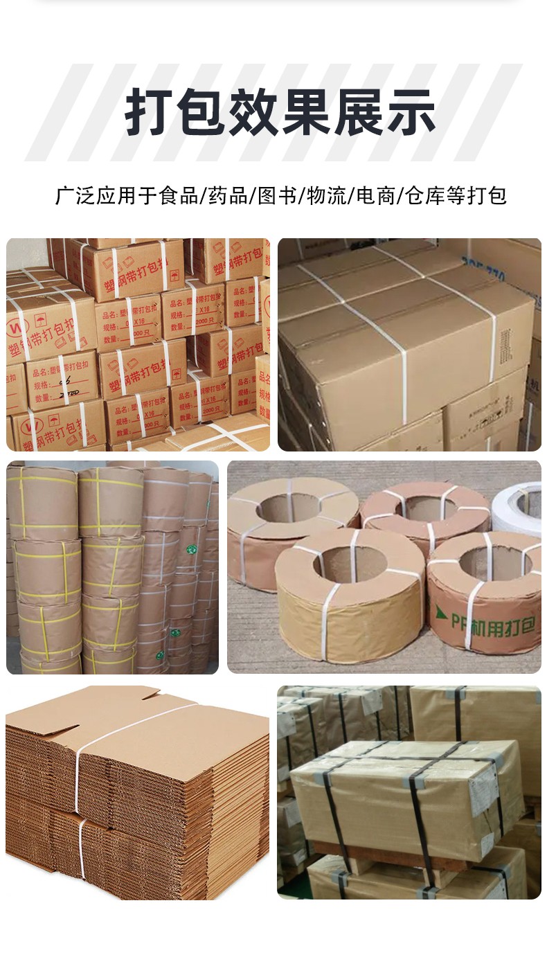 4. 廣泛適用性:可適應各種形狀、尺寸的物品打包,無論是規則的長方體、正方體,還是形狀不規則的物品,都能進行有效打包。同時,能兼容多種材質的打包帶,如塑料打包帶、塑鋼打包帶等,滿足不同行業、不同產品的包裝需求。