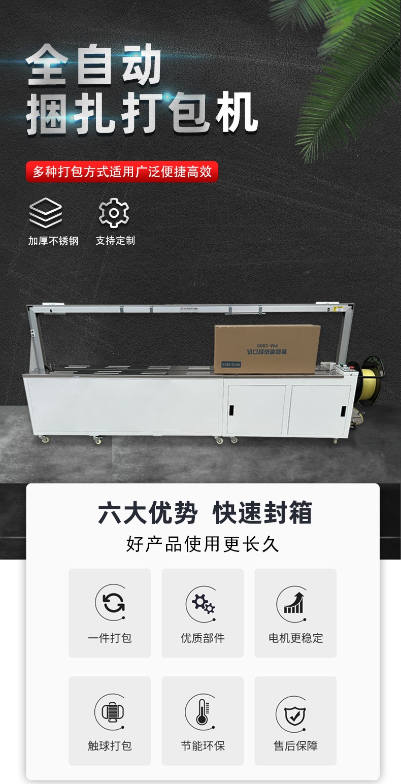 1. 高度自動化:從送帶、環繞物品到加熱封口,整個打包流程完全自動化,無需人工手動輔助,大大節省人力成本,同時降低人為操作失誤帶來的不良影響,提升打包的一致性與穩定性。