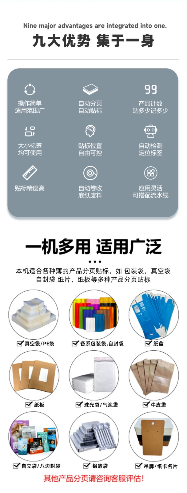 分頁貼標機高效自動化,應用覆蓋多行業輕薄平面類產品,適配性極強
