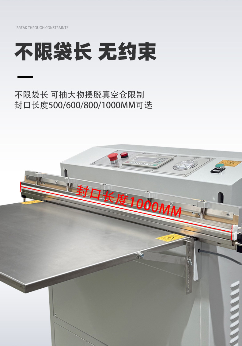 • 外抽真空包裝機的熱封條通常位于抽氣嘴下方或封口機構處,外部有金屬防護蓋(防止誤觸高溫)。