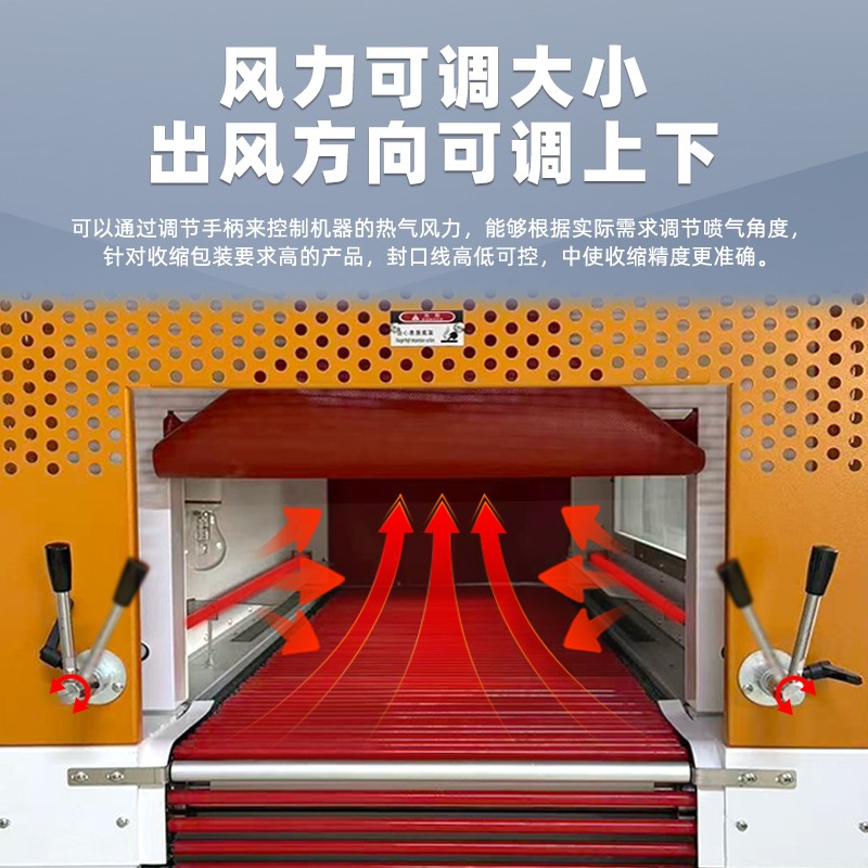 可視雙變頻熱收縮機之所以能實現精準控溫與均勻收縮,是多項核心技術協同作用的結果,既解決了傳統熱收縮機溫度波動大、收縮有死角等問題,還能適配不同產品和薄膜的包裝需求,以下是具體技術實現和優勢體現: