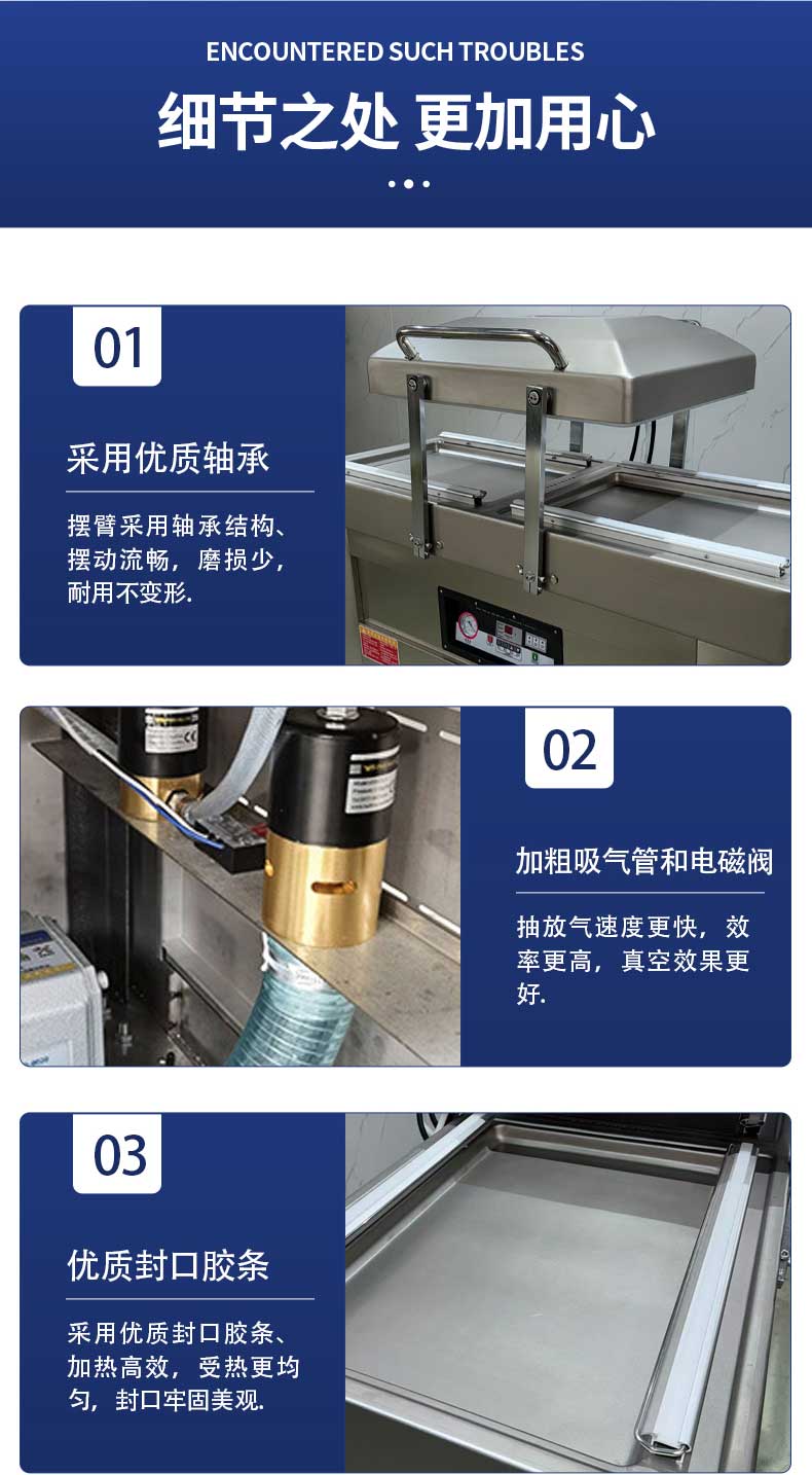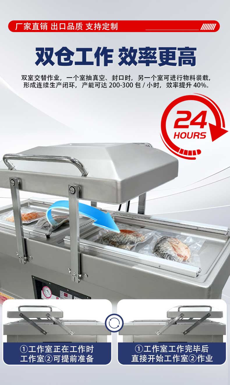 - 高效包裝:兩個(gè)真空室可交替工作,當(dāng)一個(gè)真空室進(jìn)行抽真空和封口操作時(shí),另一個(gè)真空室可進(jìn)行下一批產(chǎn)品的擺放等準(zhǔn)備工作,大大提高了包裝效率,減少了整體運(yùn)作時(shí)間3。