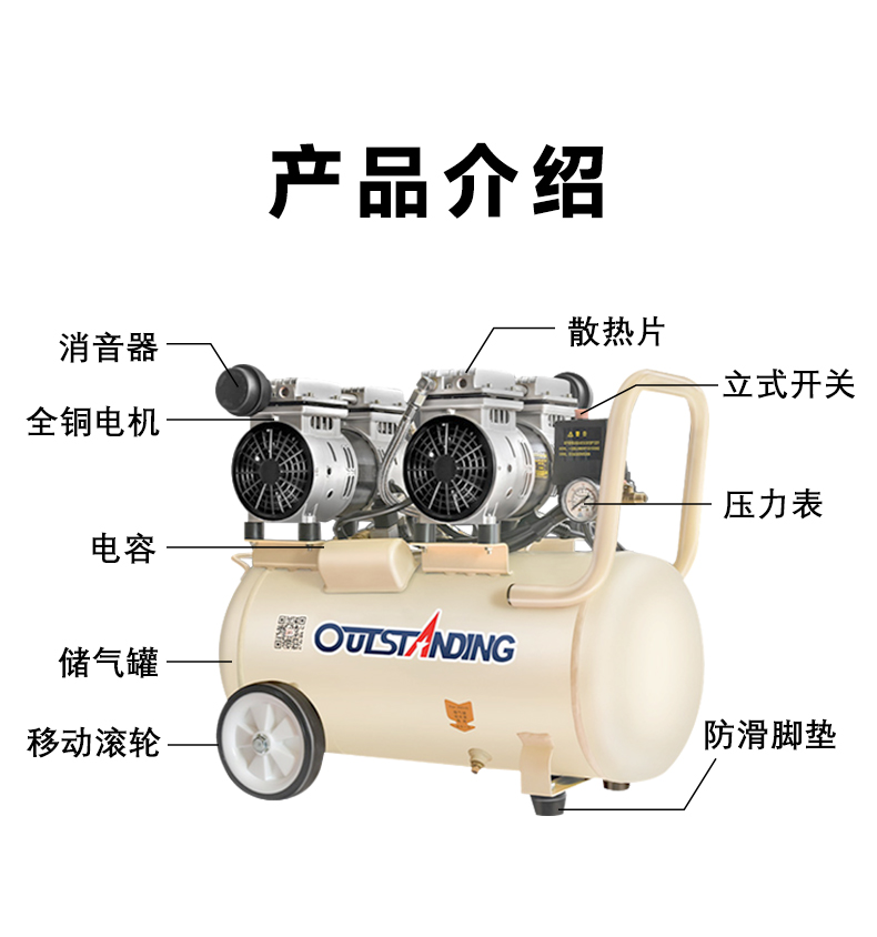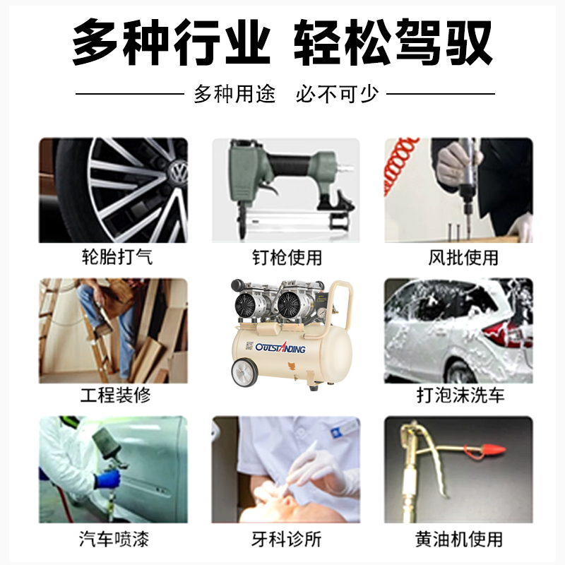 全新充氣泵靜音無油空氣壓縮機高壓打氣泵工業(yè)級空氣大功率充氣