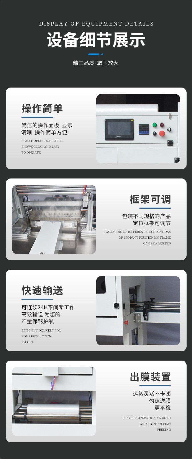 • 機械結構堅固:設備的機械部件采用高質量的材料和精密的加工工藝,結構設計合理,能夠承受長時間的工作壓力。例如,其框架結構穩固,能夠減少設備在運行過程中的振動和晃動,保證套膜動作的準確性。