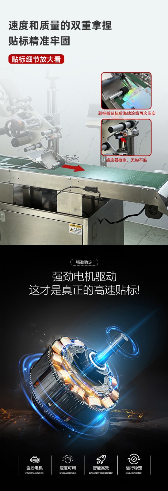 • 質量穩定:在大規模生產中,產品質量的穩定性至關重要。全自動分頁貼標機能夠以穩定的性能和高精度的貼標操作,確保每一個產品上的標簽都粘貼得準確、牢固、美觀,保證了產品包裝的一致性和規范性,有助于企業樹立良好的品牌形象,提高產品在市場上的競爭力,更好地滿足大規模生產對產品質量的嚴格要求