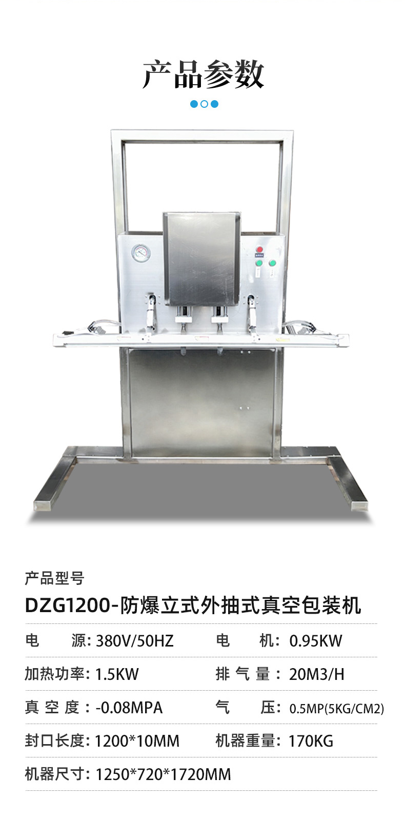 - 防爆性能優越:采用物理隔離防爆技術,嚴格選用防爆達標元件,電器箱、真空泵、熱封條等都經過特殊的防爆處理,能有效防止在操作過程中產生火花,避免爆炸等危險情況的發生2。