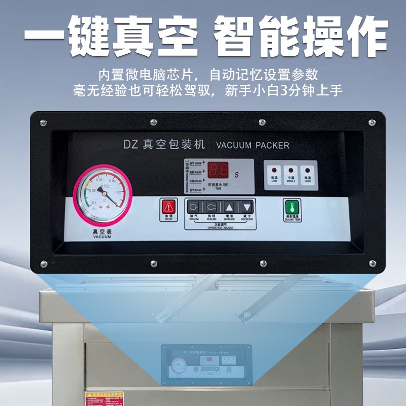 - 操作簡便:通常采用微電腦控制系統(tǒng),使用者只需設定好抽真空時間和包裝封口時間,按下真空室蓋,機器即可自動完成真空包裝的全過程。