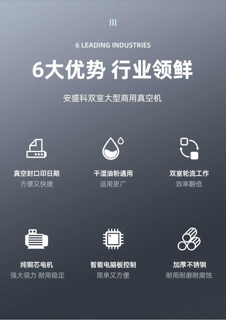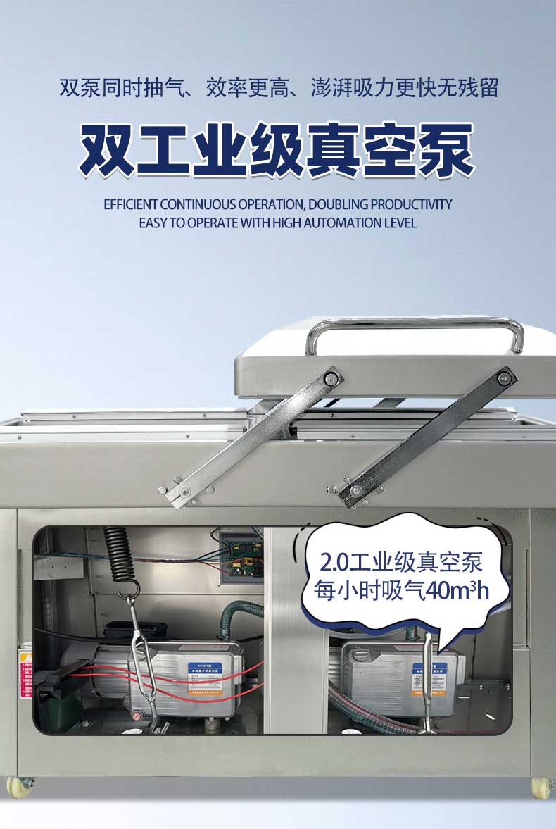 - 雙室設計:一個真空室在抽真空時,另一個真空室可以擺放包裝物,交替工作,節(jié)省操作時間,提高包裝效率。